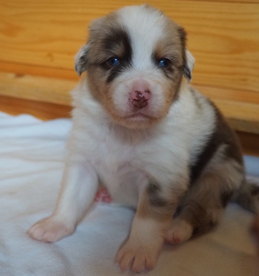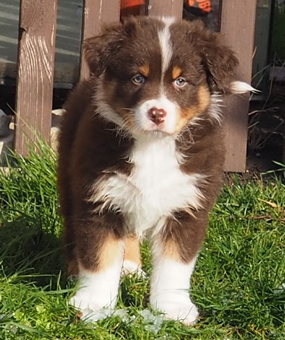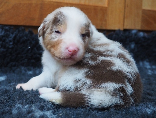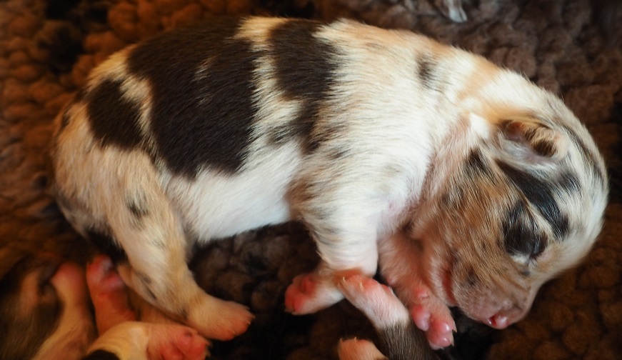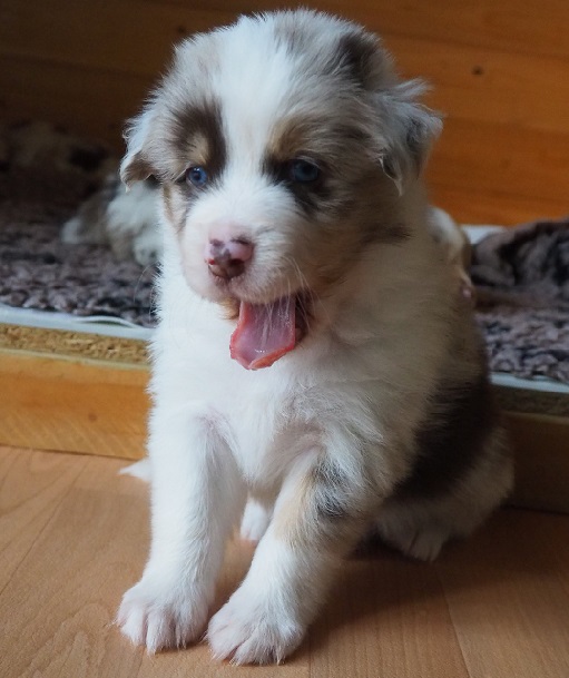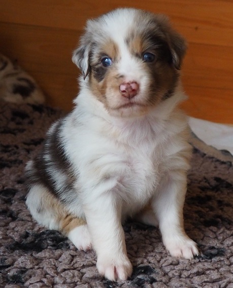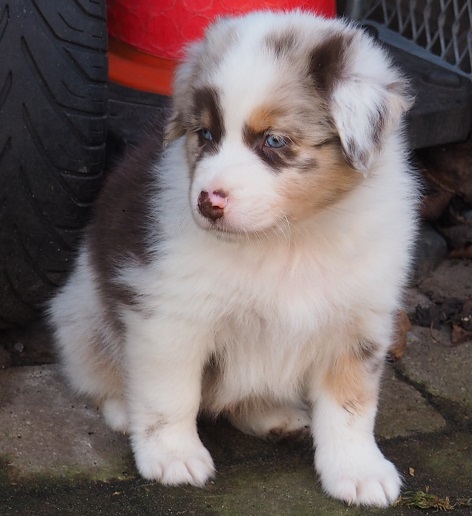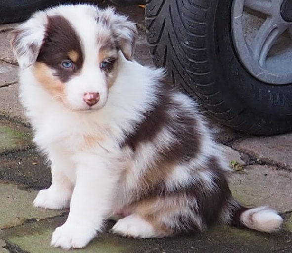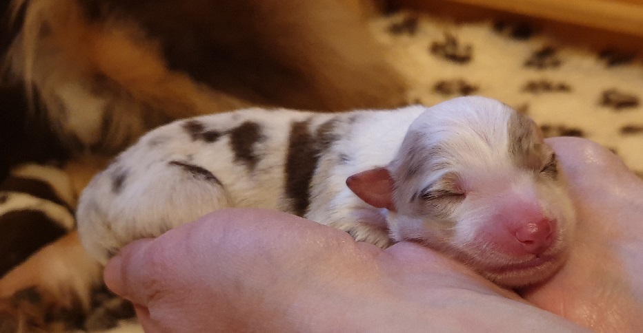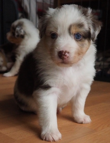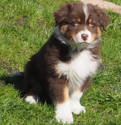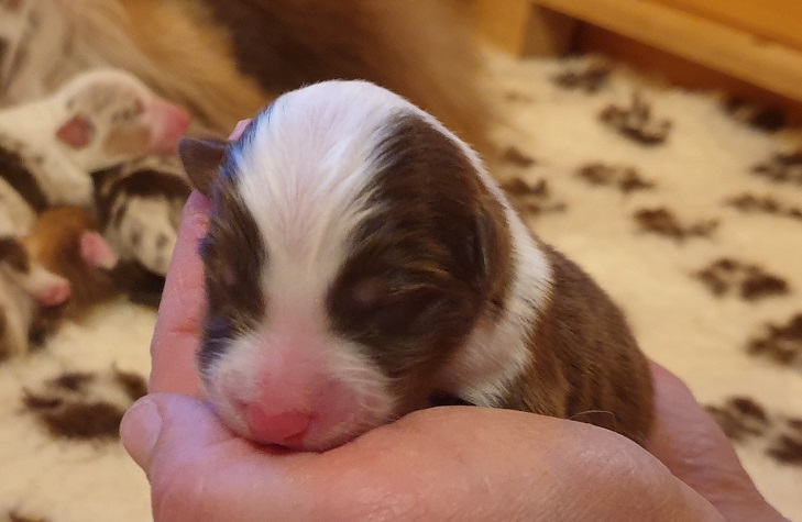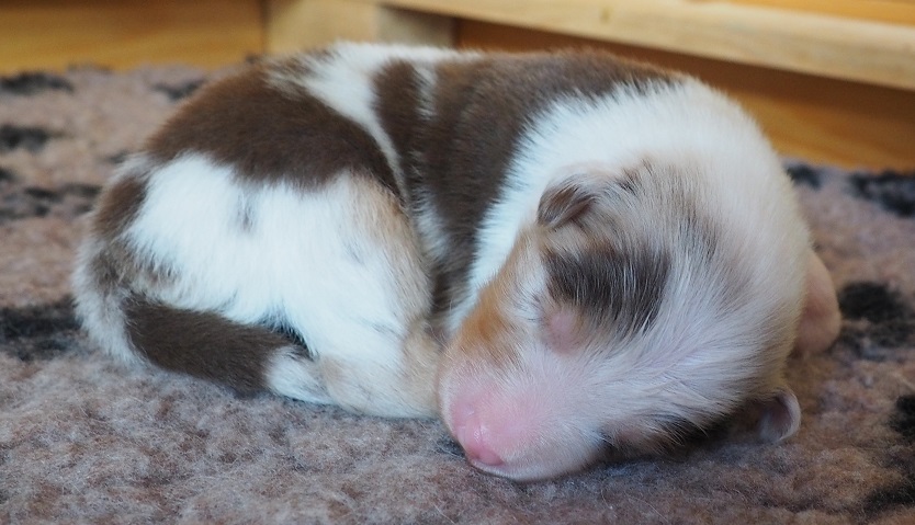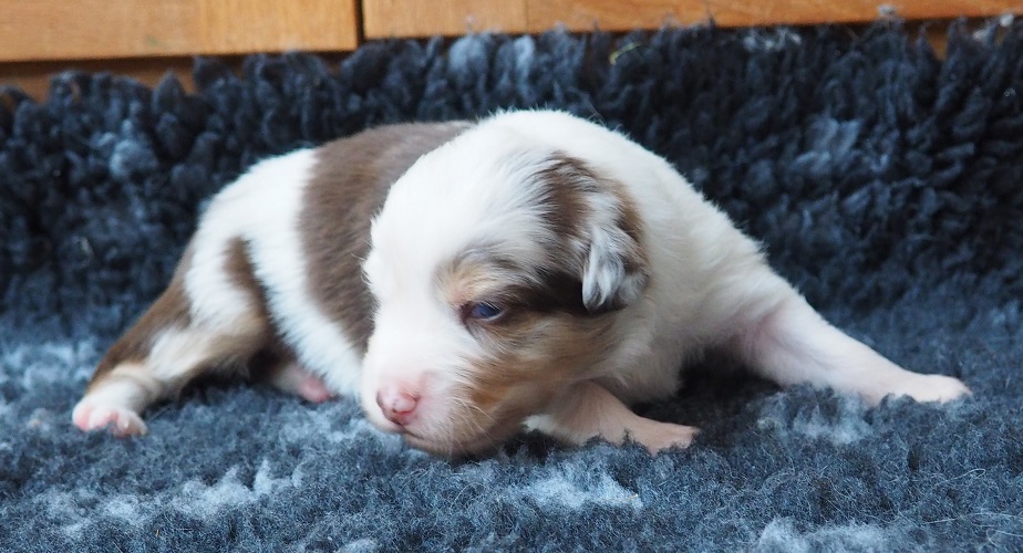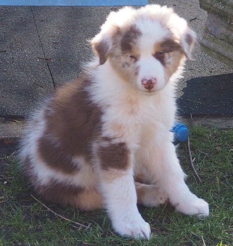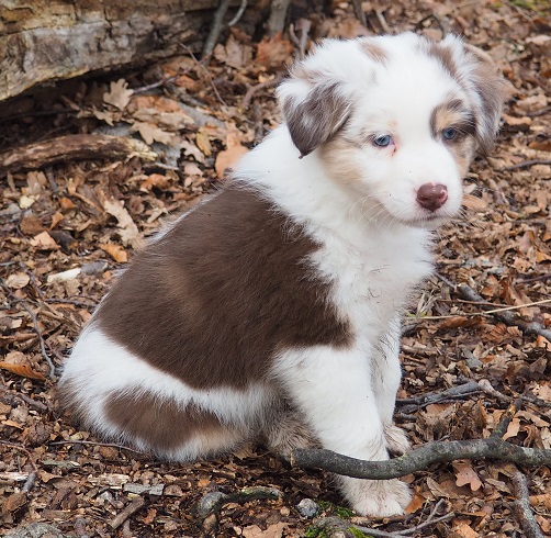 Es sind 4 Mädels, 1 in red tri und 3 in red merle und 5 Jungs, 2 in red tri und 3 in red merle.