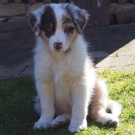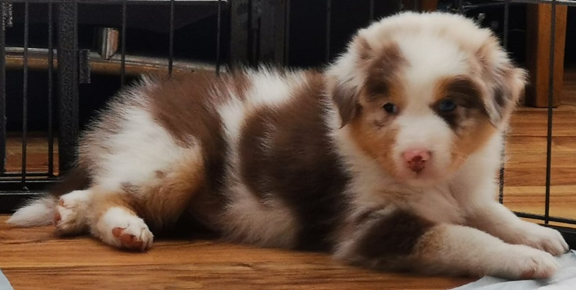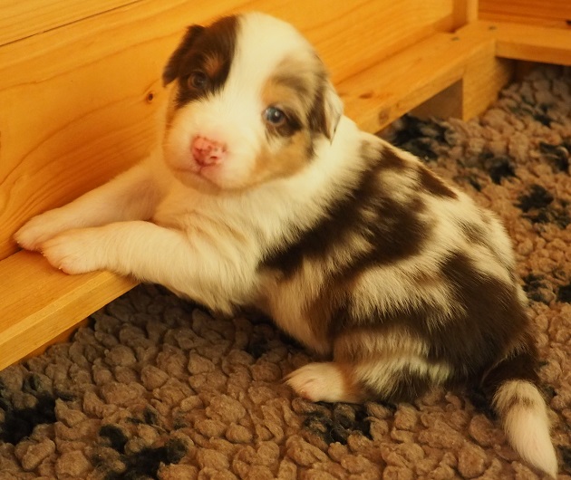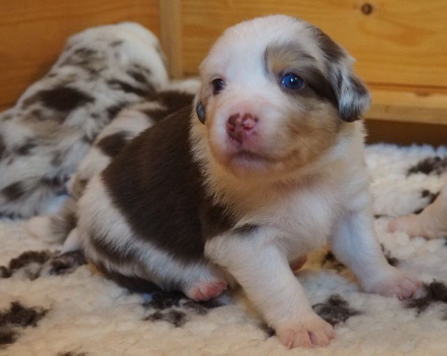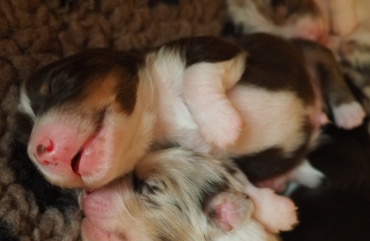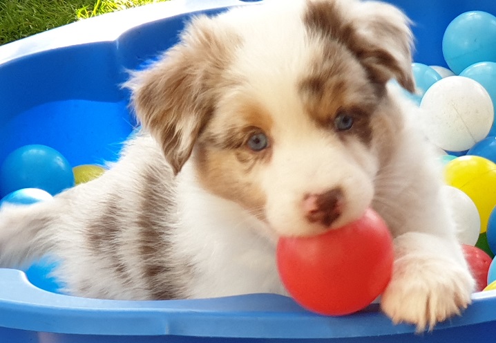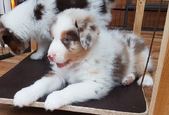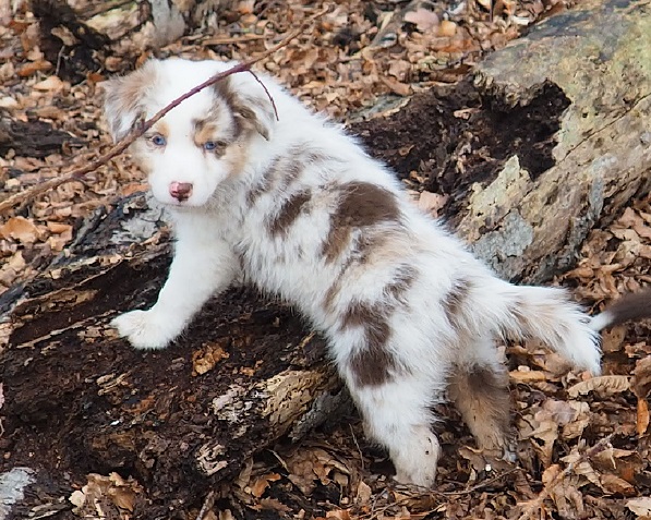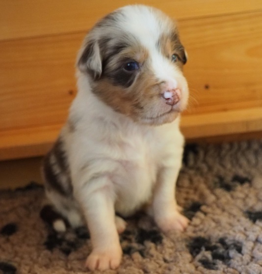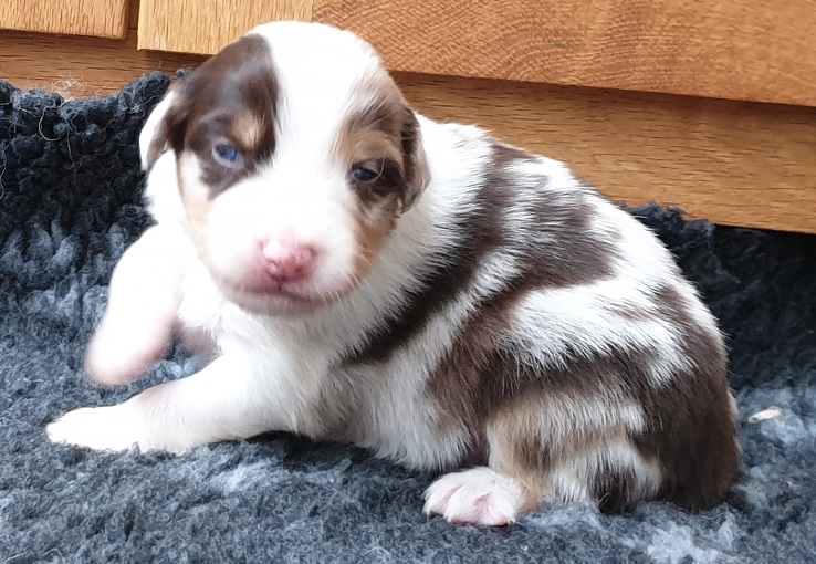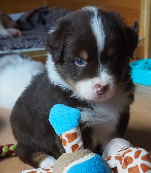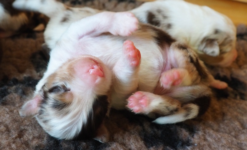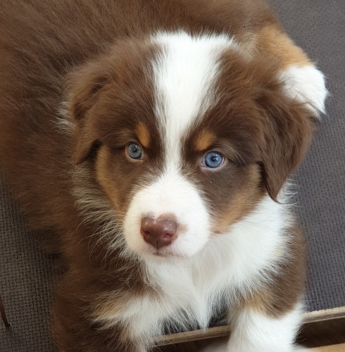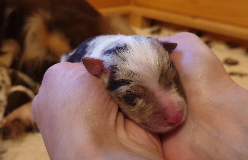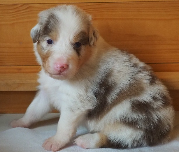 Es sind 4 Mädels, 1 in red tri und 3 in red merle und 5 Jungs, 2 in red tri und 3 in red merle.