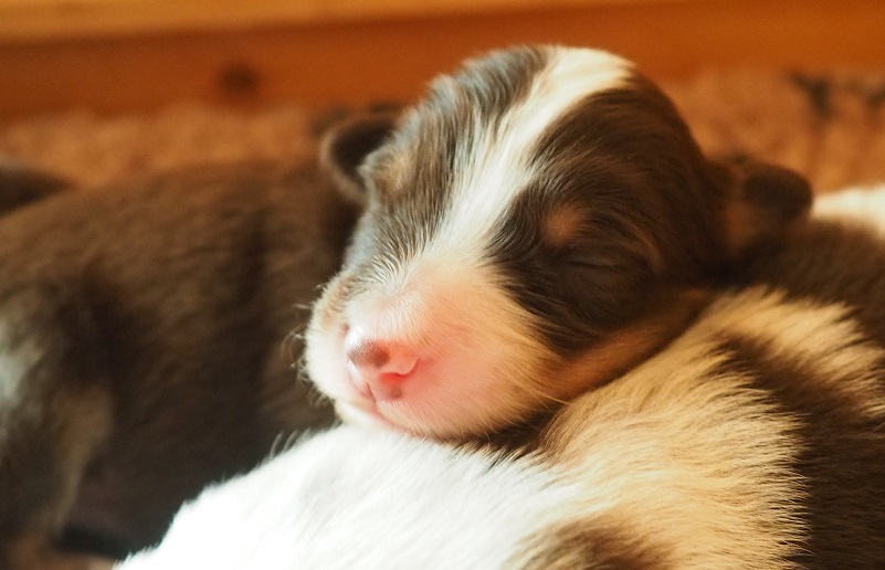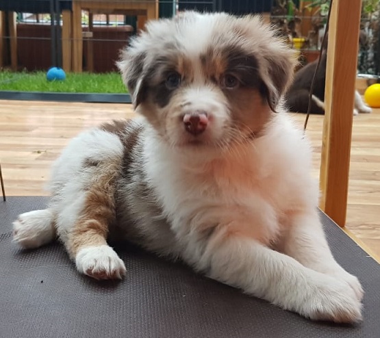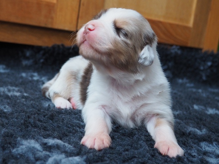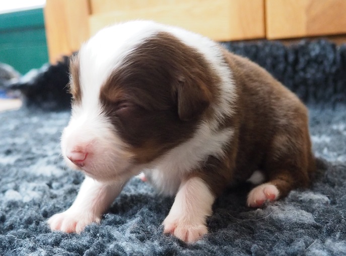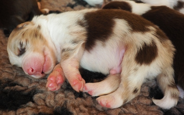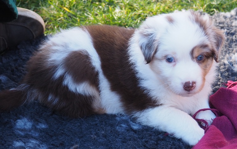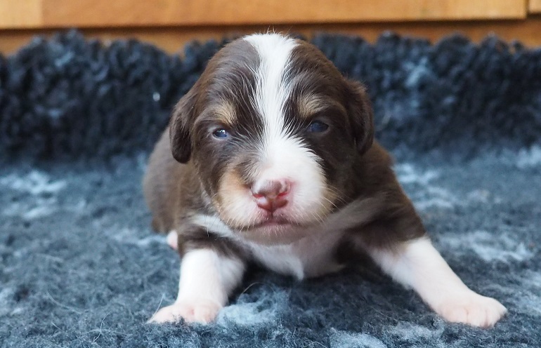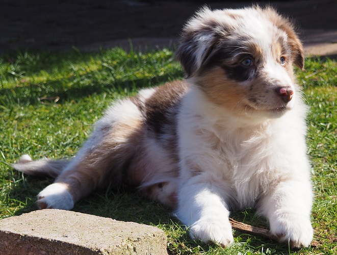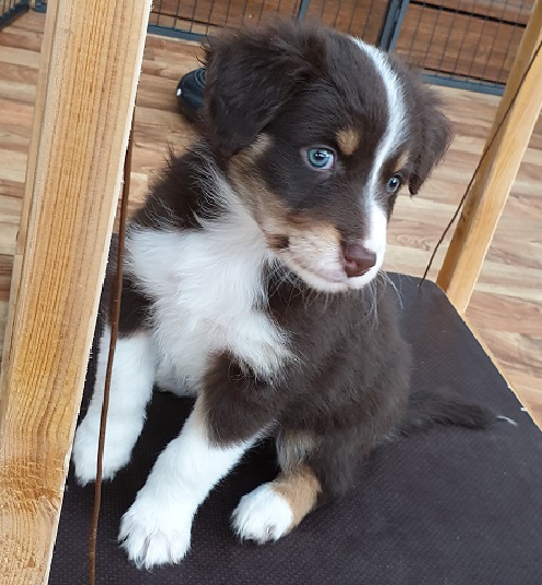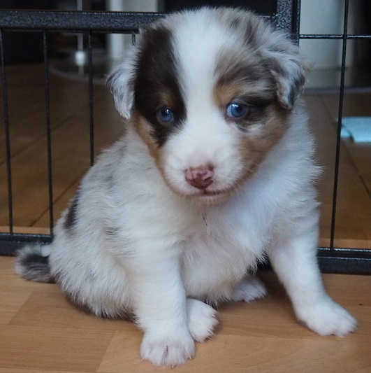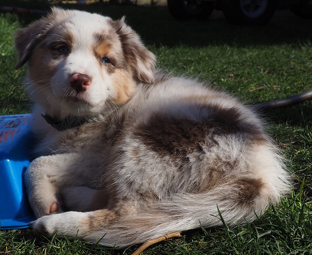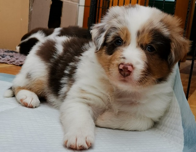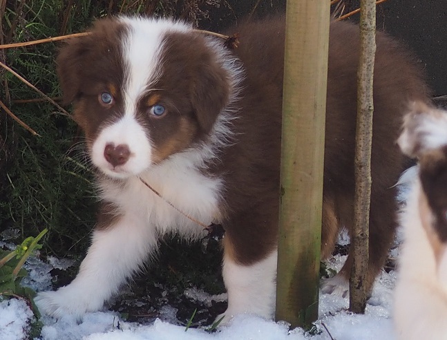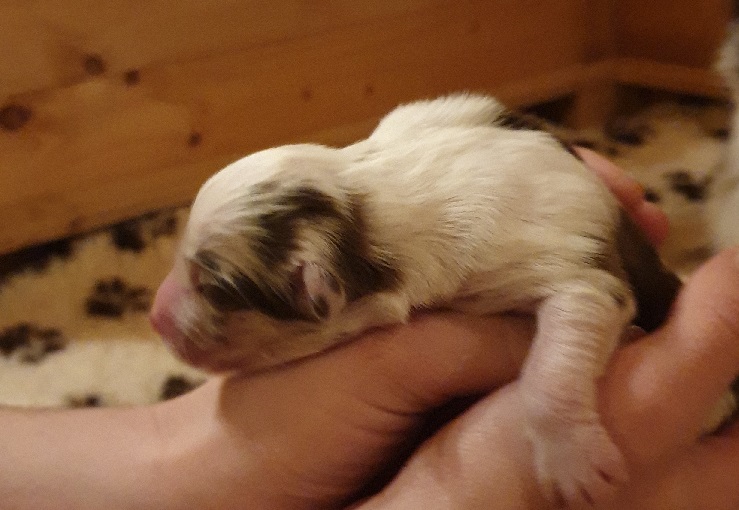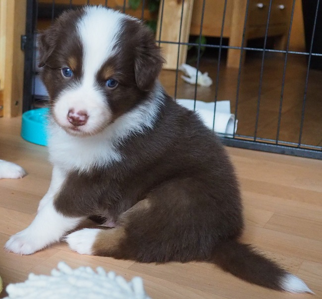 Es sind 4 Mädels, 1 in red tri und 3 in red merle und 5 Jungs, 2 in red tri und 3 in red merle.