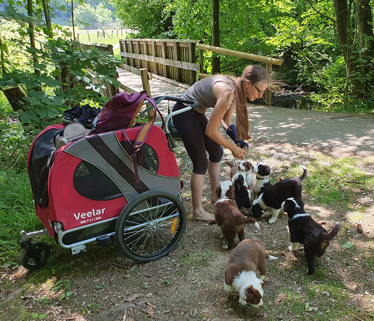 Durch meine ehrenamtliche Arbeit in der Hundeschule meiner Freundin weiß ich wie wichtig eine frühzeitige Sozialisierung und gute Prägung für alle Welpen ist.