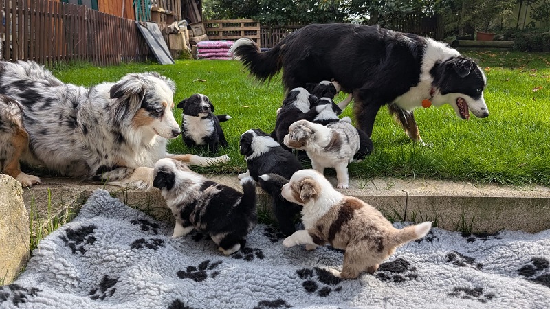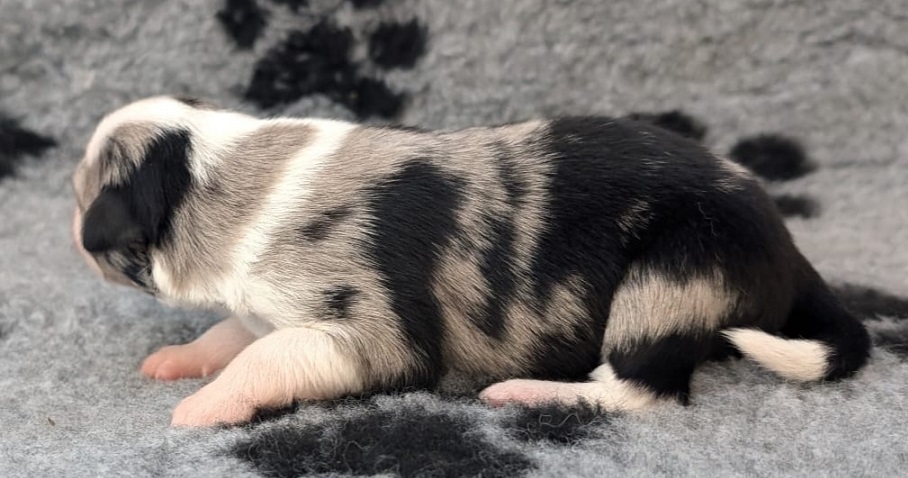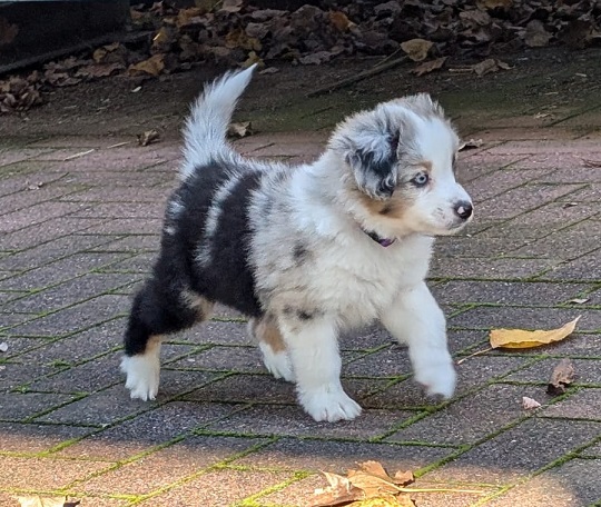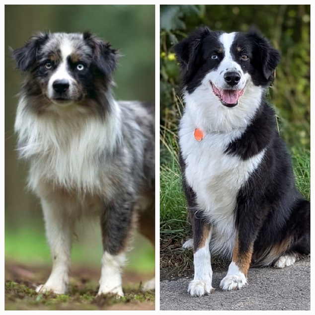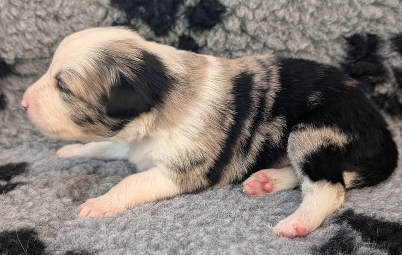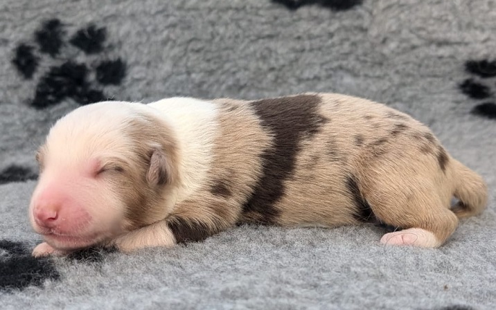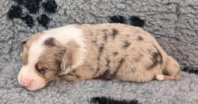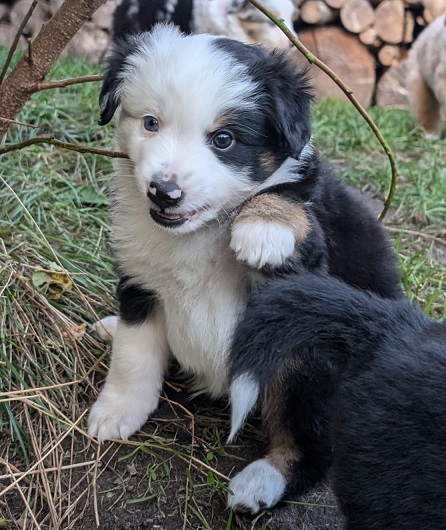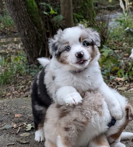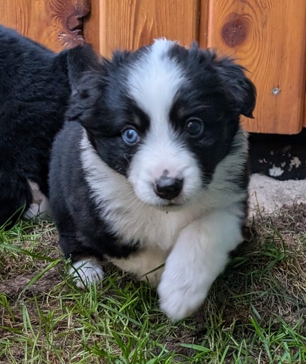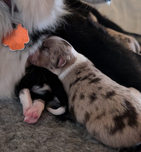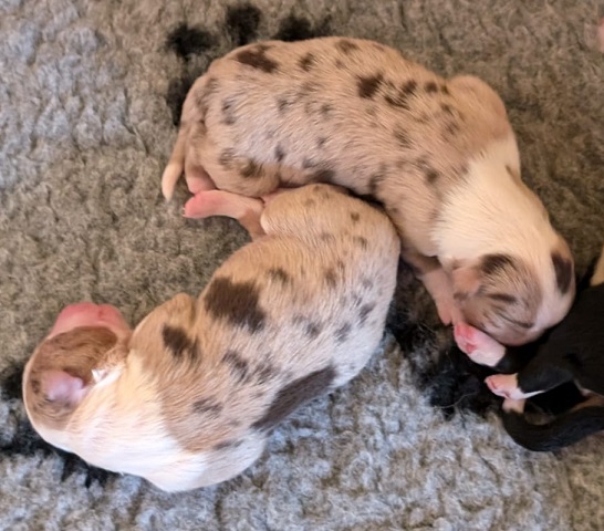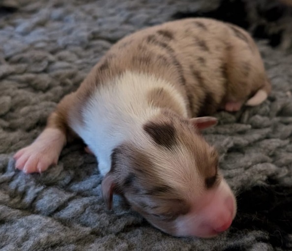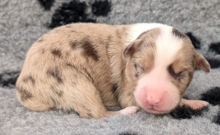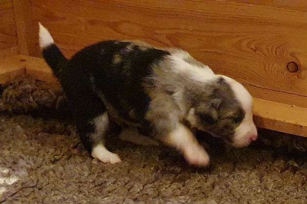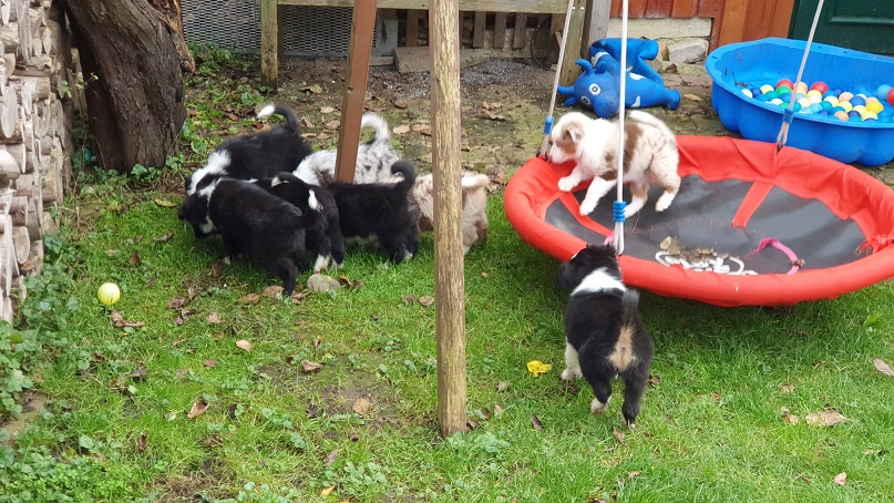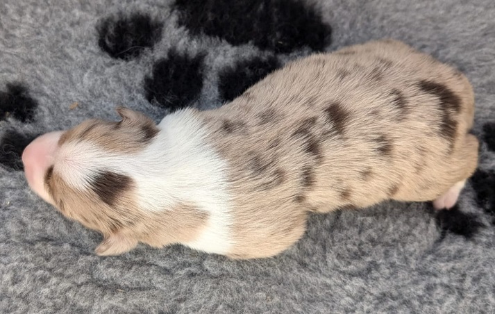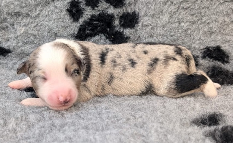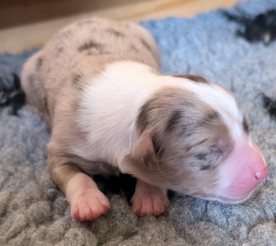 Mini Australian Shepherd Wurf: Picot und Phoebe Am 5.9. hat unsere Phoebe 9 kleinen Welpen das Leben geschenkt. Es sind 3 Hündinnen in black tri und 6 Rüden 2 in black tri, 2 in blue merle und 2 in red merle. Lange haben wir nach einem Deckrüden für unsere Maus gesucht. Da Phoebe mit ihren 46 cm eine relativ große Hündin ist, haben wir extra nach einem kleine Rüden gesucht. Bei Isabelle und den Lucky Hearts sind wir auf den kleinen Picot gestoßen. Picot ist erst im Frühjahr aus Portugal nach Deutschland gekommen und einfach nur toll. Bildschön, mit besten Untersuchungsergebnissen und mit nur 38,5 cm relativ klein. Einen lieben Dank an Isabelle, dass der süße Picot der Papa von Phoebes Welpen werden durfte. Phoebe und Picot haben alle nötigen Untersuchungen: Phoebe HD A2/ ED 0 CEA, PRA, HSF4, NCL, DM, CMR1, EIC, HUU, IGS, MH, von Willebrand, Hüftinstabilität 1 und 2 frei und MDR1 +/-. Mehr über Phoebe erfahrt ihr unter "unsere Hunde" "Hündinnen" und dann "Phoebe". Picot Picot ist HD, PL, ED, OCD und ÜGS frei außerdem ist er MDR, PRA, NL, HSF4, CEA, DM und NAD frei. Mehr über Picot erfahrt ihr auf der Homepage von den Lucky Hearts Mini Australian Shepherds unter : Tutti Frutti of American madness - Lucky Hearts Miniature Australian Shepherd (lucky-hearts.com)