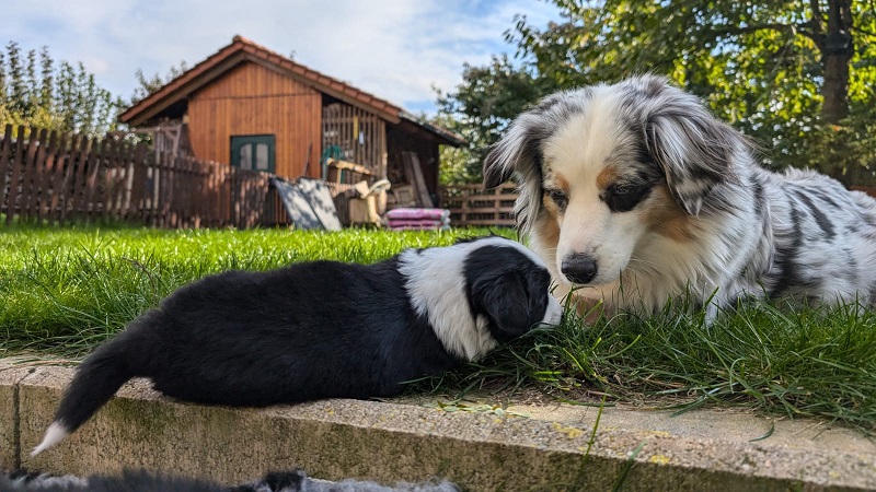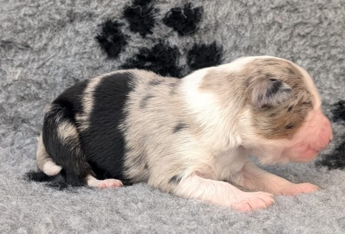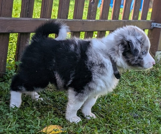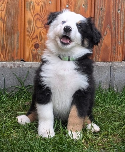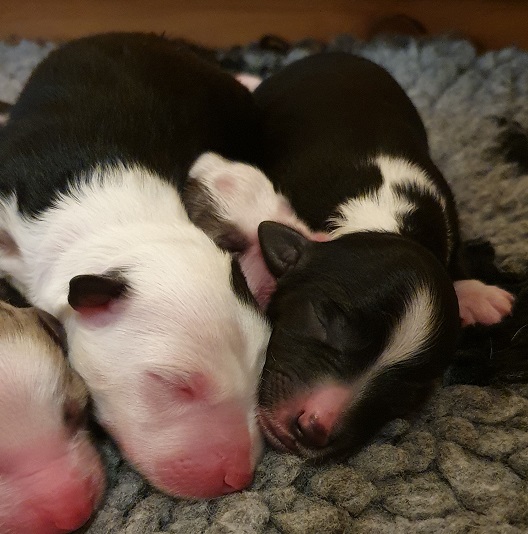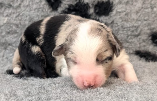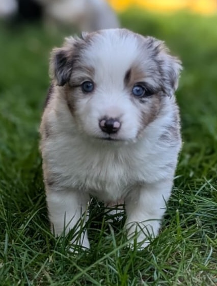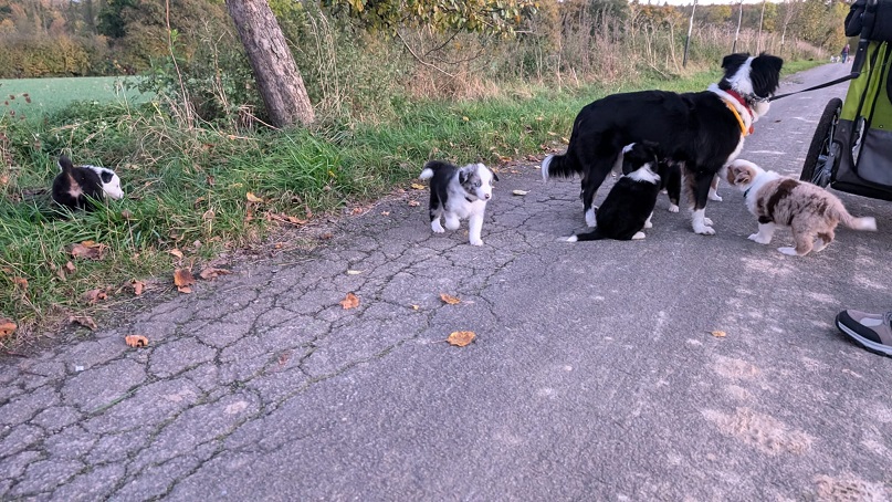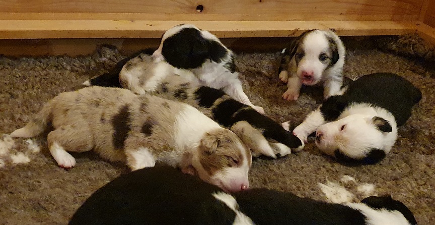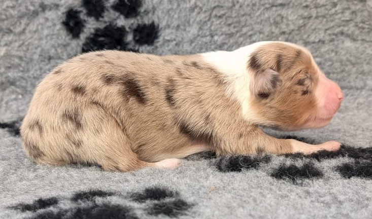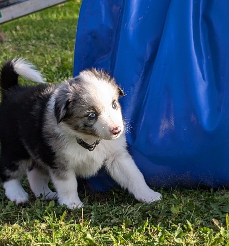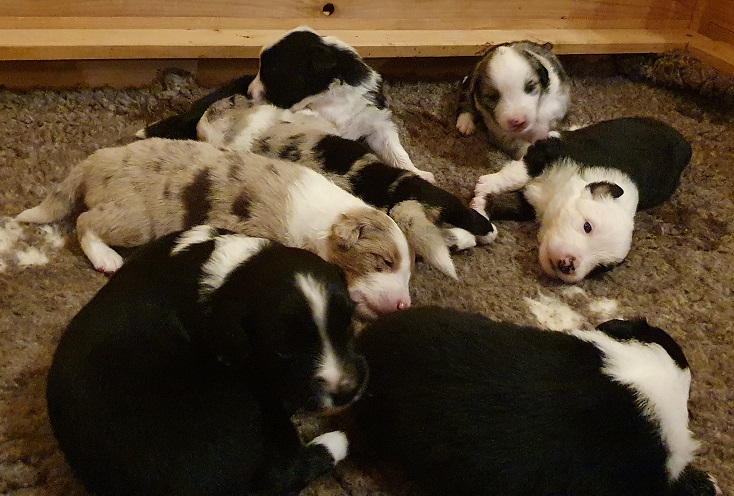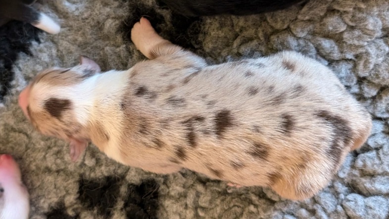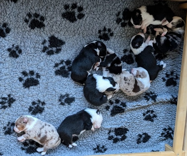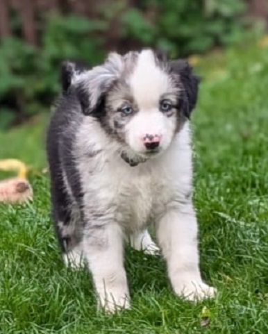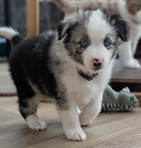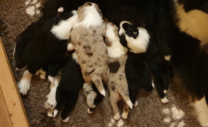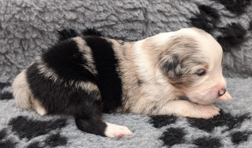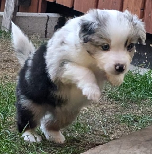 Mini Australian Shepherd Wurf: Picot und Phoebe Am 5.9. hat unsere Phoebe 9 kleinen Welpen das Leben geschenkt. Es sind 3 Hündinnen in black tri und 6 Rüden 2 in black tri, 2 in blue merle und 2 in red merle. Lange haben wir nach einem Deckrüden für unsere Maus gesucht. Da Phoebe mit ihren 46 cm eine relativ große Hündin ist, haben wir extra nach einem kleine Rüden gesucht. Bei Isabelle und den Lucky Hearts sind wir auf den kleinen Picot gestoßen. Picot ist erst im Frühjahr aus Portugal nach Deutschland gekommen und einfach nur toll. Bildschön, mit besten Untersuchungsergebnissen und mit nur 38,5 cm relativ klein. Einen lieben Dank an Isabelle, dass der süße Picot der Papa von Phoebes Welpen werden durfte. Phoebe und Picot haben alle nötigen Untersuchungen: Phoebe HD A2/ ED 0 CEA, PRA, HSF4, NCL, DM, CMR1, EIC, HUU, IGS, MH, von Willebrand, Hüftinstabilität 1 und 2 frei und MDR1 +/-. Mehr über Phoebe erfahrt ihr unter "unsere Hunde" "Hündinnen" und dann "Phoebe". Picot Picot ist HD, PL, ED, OCD und ÜGS frei außerdem ist er MDR, PRA, NL, HSF4, CEA, DM und NAD frei. Mehr über Picot erfahrt ihr auf der Homepage von den Lucky Hearts Mini Australian Shepherds unter : Tutti Frutti of American madness - Lucky Hearts Miniature Australian Shepherd (lucky-hearts.com)