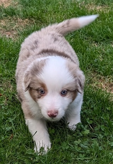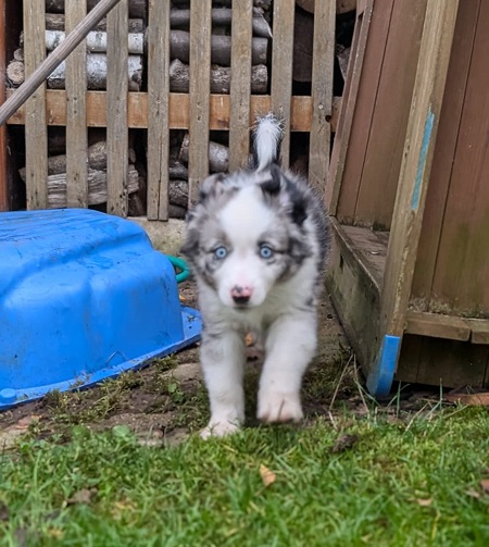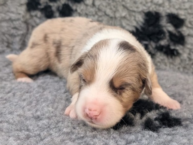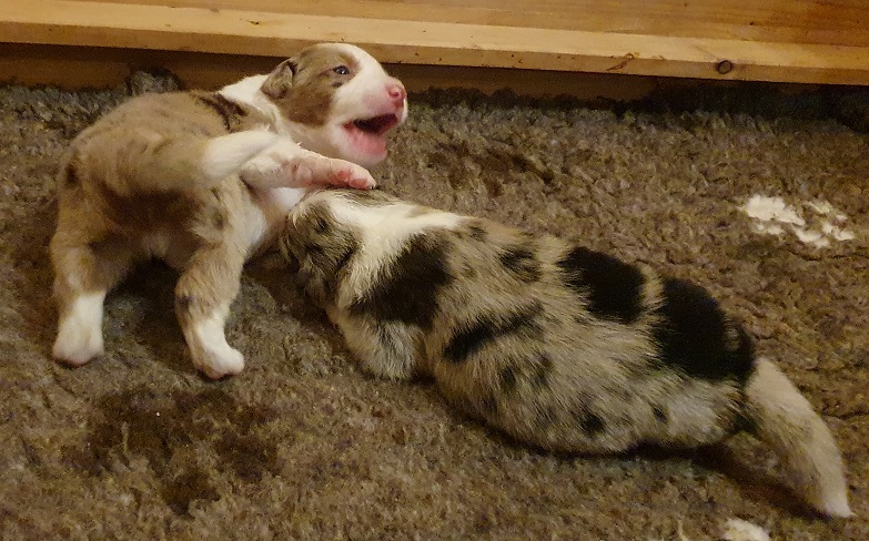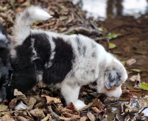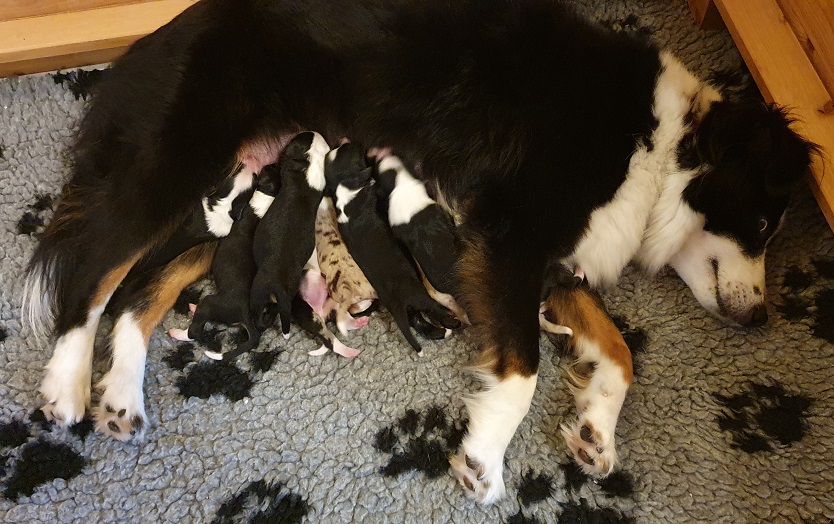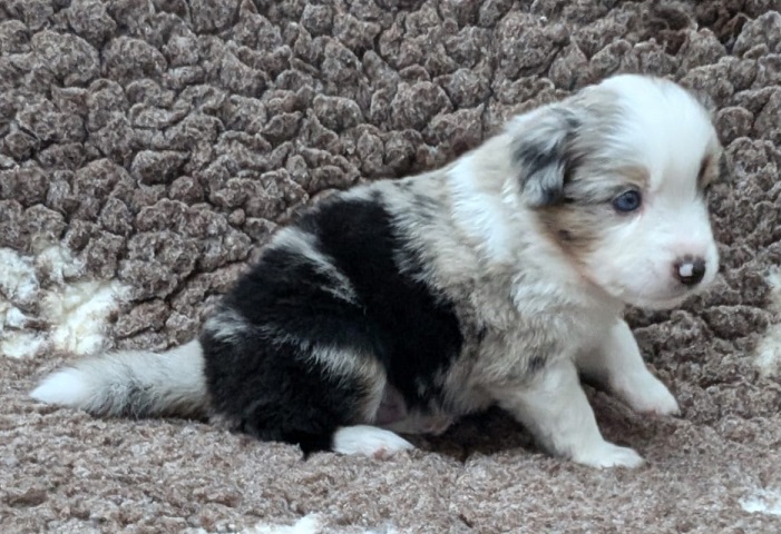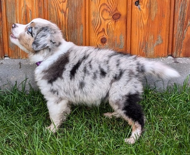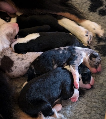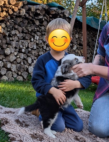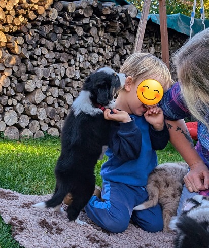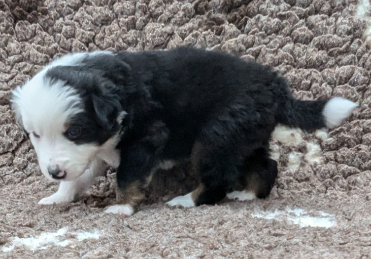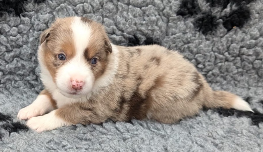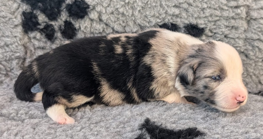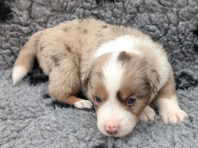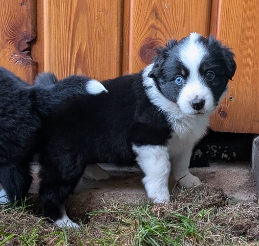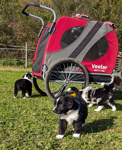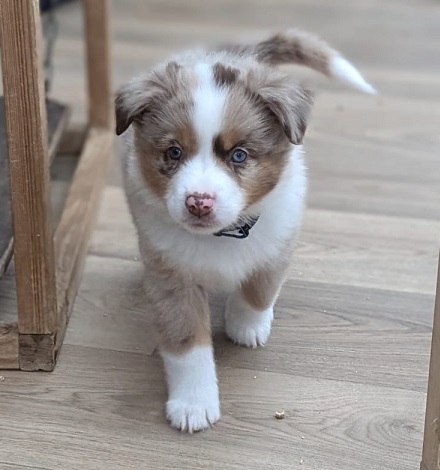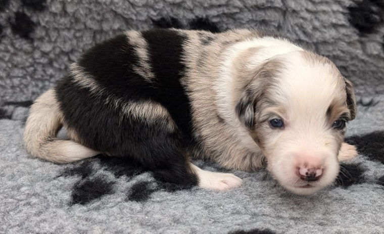 Mini Australian Shepherd Wurf: Picot und Phoebe Am 5.9. hat unsere Phoebe 9 kleinen Welpen das Leben geschenkt. Es sind 3 Hündinnen in black tri und 6 Rüden 2 in black tri, 2 in blue merle und 2 in red merle. Lange haben wir nach einem Deckrüden für unsere Maus gesucht. Da Phoebe mit ihren 46 cm eine relativ große Hündin ist, haben wir extra nach einem kleine Rüden gesucht. Bei Isabelle und den Lucky Hearts sind wir auf den kleinen Picot gestoßen. Picot ist erst im Frühjahr aus Portugal nach Deutschland gekommen und einfach nur toll. Bildschön, mit besten Untersuchungsergebnissen und mit nur 38,5 cm relativ klein. Einen lieben Dank an Isabelle, dass der süße Picot der Papa von Phoebes Welpen werden durfte. Phoebe und Picot haben alle nötigen Untersuchungen: Phoebe HD A2/ ED 0 CEA, PRA, HSF4, NCL, DM, CMR1, EIC, HUU, IGS, MH, von Willebrand, Hüftinstabilität 1 und 2 frei und MDR1 +/-. Mehr über Phoebe erfahrt ihr unter "unsere Hunde" "Hündinnen" und dann "Phoebe". Picot Picot ist HD, PL, ED, OCD und ÜGS frei außerdem ist er MDR, PRA, NL, HSF4, CEA, DM und NAD frei. Mehr über Picot erfahrt ihr auf der Homepage von den Lucky Hearts Mini Australian Shepherds unter : Tutti Frutti of American madness - Lucky Hearts Miniature Australian Shepherd (lucky-hearts.com)