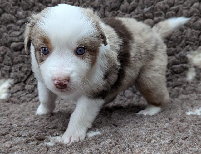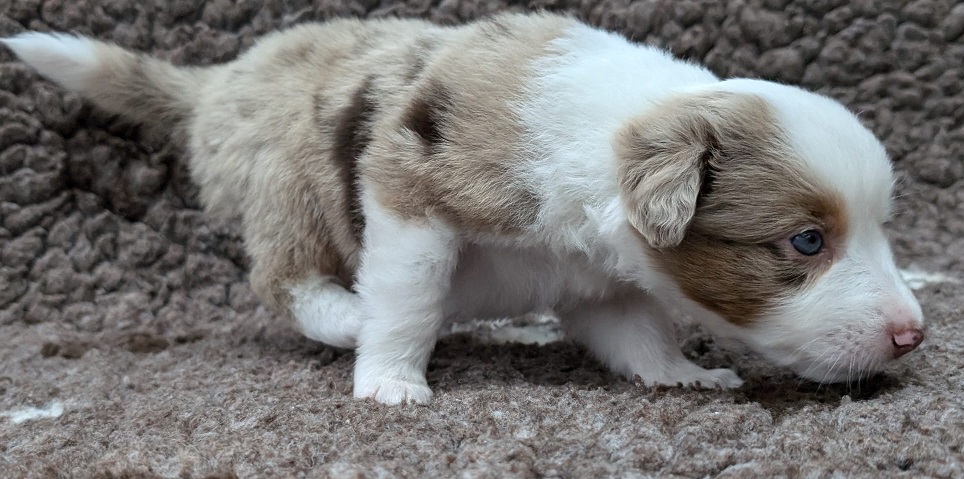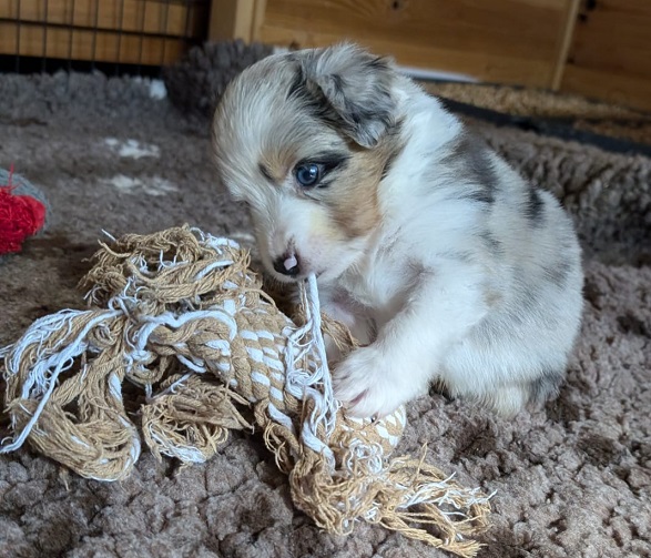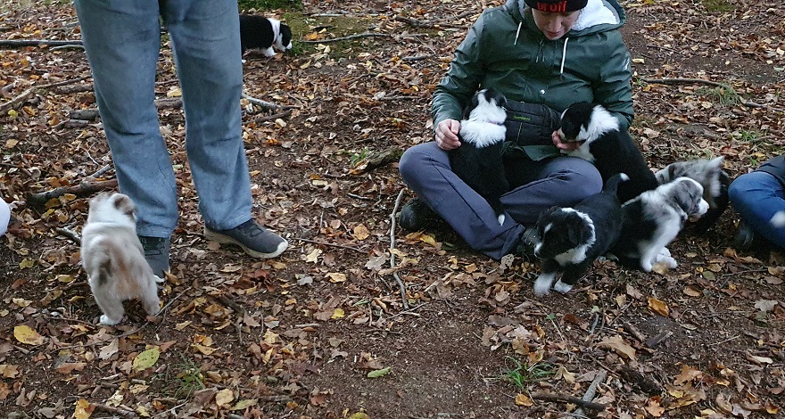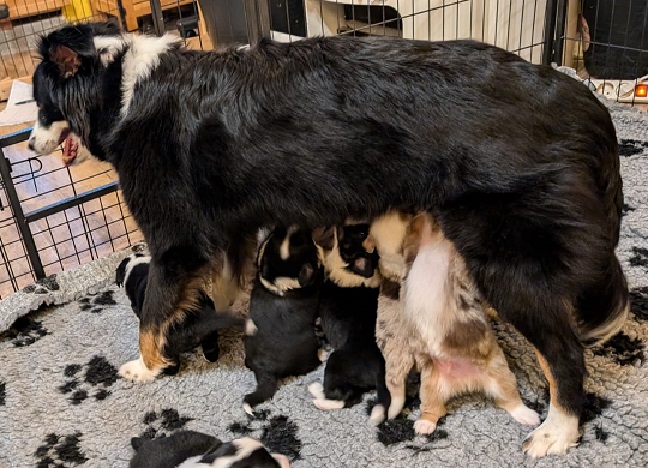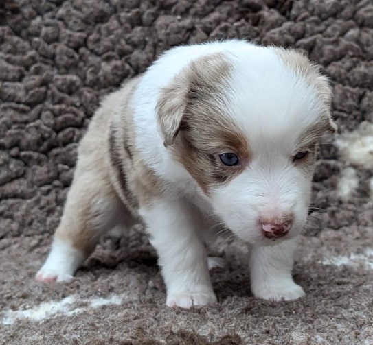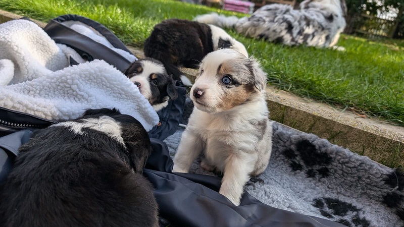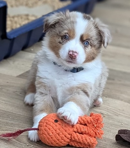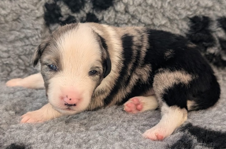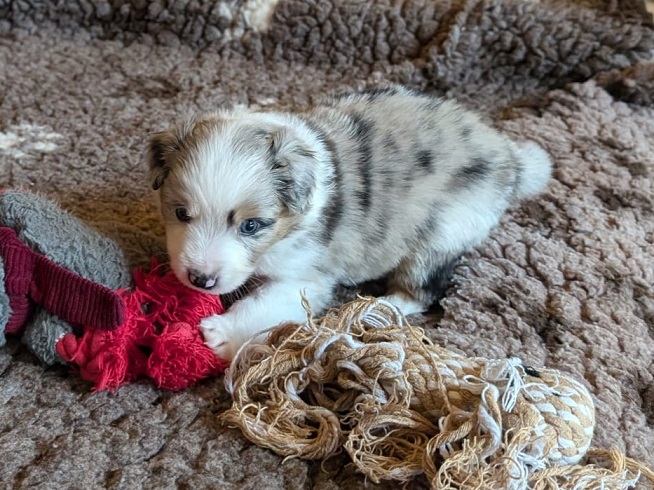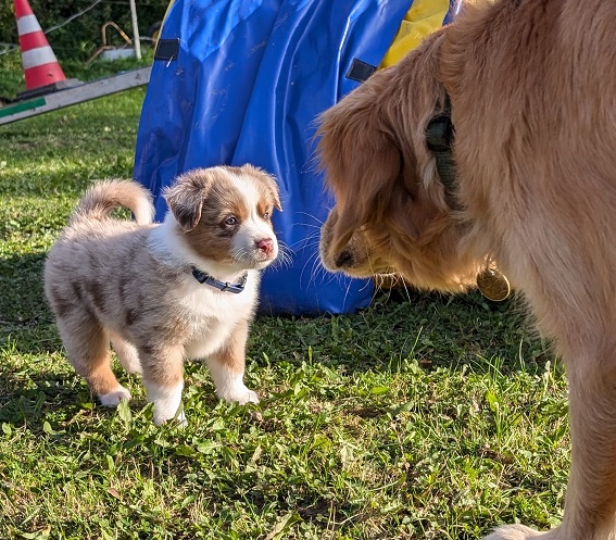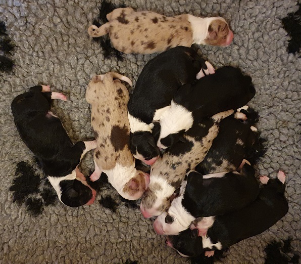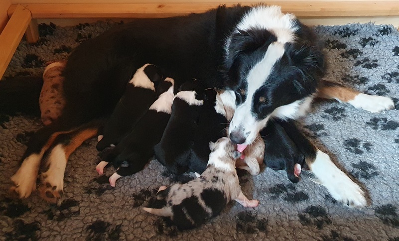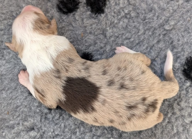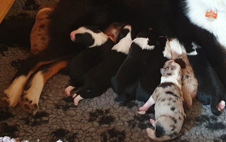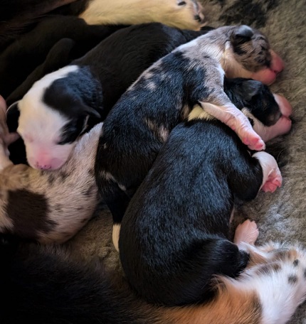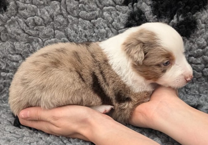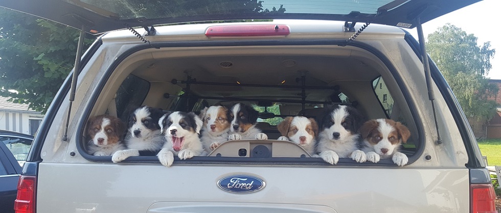 Mini Australian Shepherd Wurf: Picot und Phoebe Am 5.9. hat unsere Phoebe 9 kleinen Welpen das Leben geschenkt. Es sind 3 Hündinnen in black tri und 6 Rüden 2 in black tri, 2 in blue merle und 2 in red merle. Lange haben wir nach einem Deckrüden für unsere Maus gesucht. Da Phoebe mit ihren 46 cm eine relativ große Hündin ist, haben wir extra nach einem kleine Rüden gesucht. Bei Isabelle und den Lucky Hearts sind wir auf den kleinen Picot gestoßen. Picot ist erst im Frühjahr aus Portugal nach Deutschland gekommen und einfach nur toll. Bildschön, mit besten Untersuchungsergebnissen und mit nur 38,5 cm relativ klein. Einen lieben Dank an Isabelle, dass der süße Picot der Papa von Phoebes Welpen werden durfte. Phoebe und Picot haben alle nötigen Untersuchungen: Phoebe HD A2/ ED 0 CEA, PRA, HSF4, NCL, DM, CMR1, EIC, HUU, IGS, MH, von Willebrand, Hüftinstabilität 1 und 2 frei und MDR1 +/-. Mehr über Phoebe erfahrt ihr unter "unsere Hunde" "Hündinnen" und dann "Phoebe". Picot Picot ist HD, PL, ED, OCD und ÜGS frei außerdem ist er MDR, PRA, NL, HSF4, CEA, DM und NAD frei. Mehr über Picot erfahrt ihr auf der Homepage von den Lucky Hearts Mini Australian Shepherds unter : Tutti Frutti of American madness - Lucky Hearts Miniature Australian Shepherd (lucky-hearts.com)
