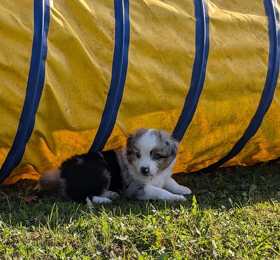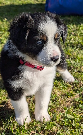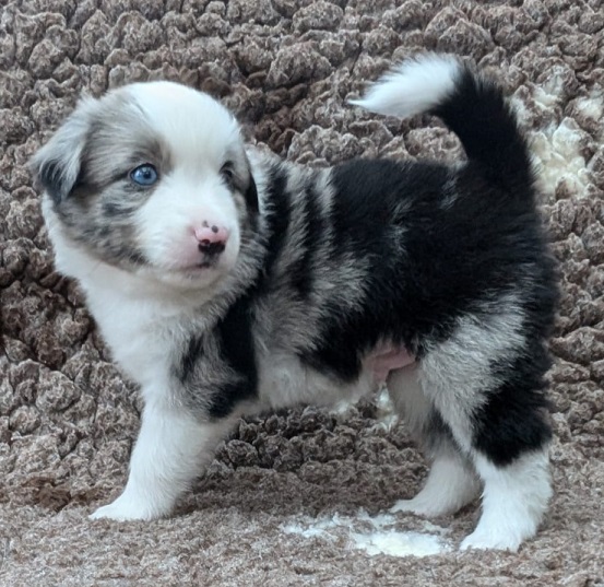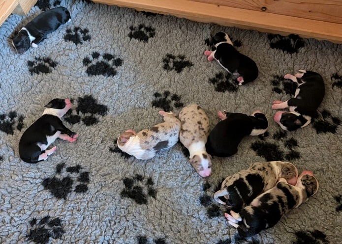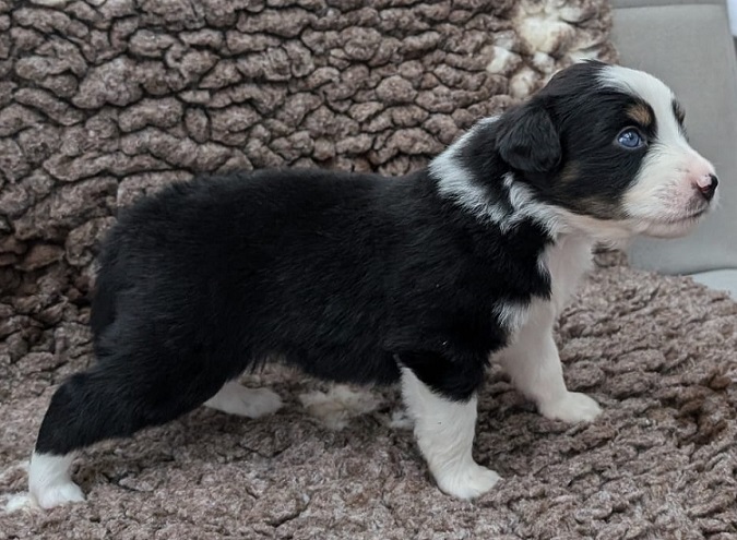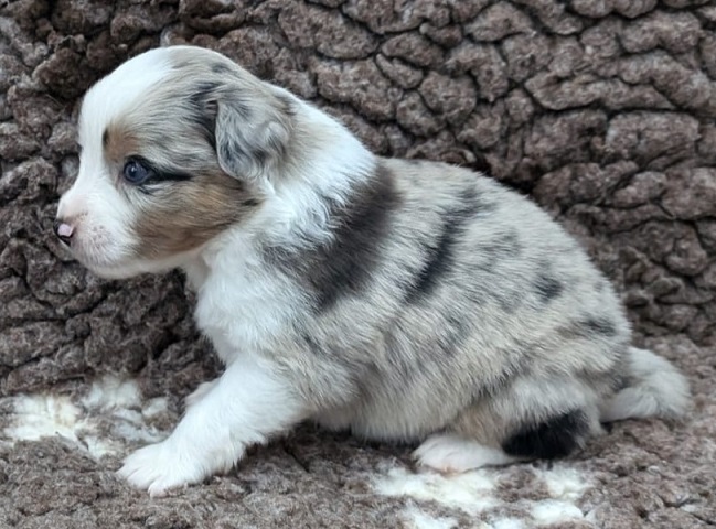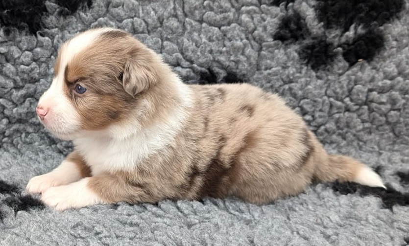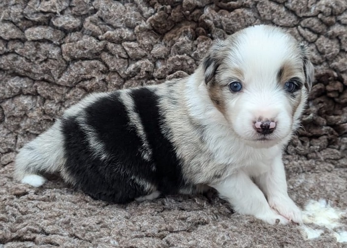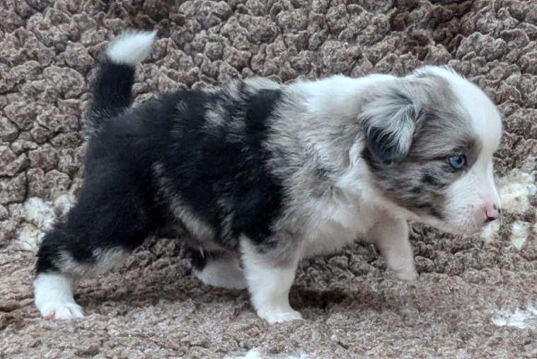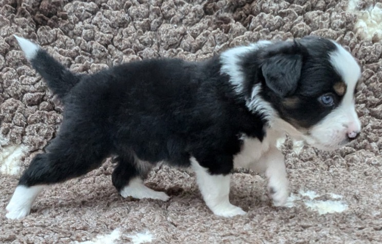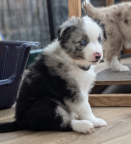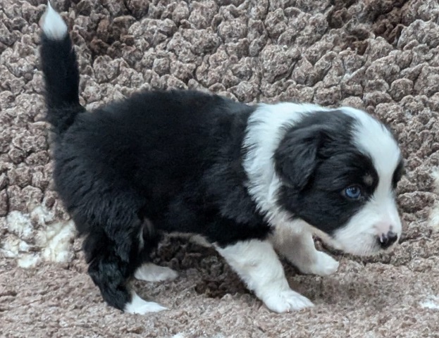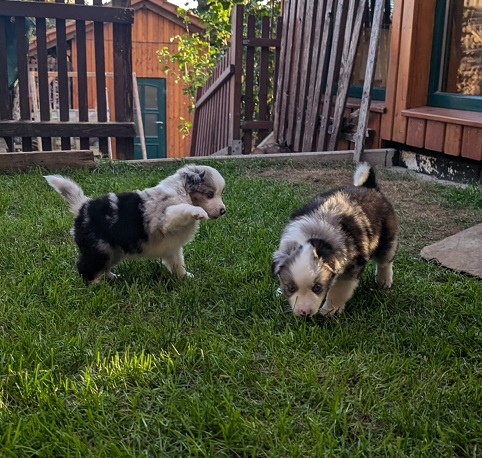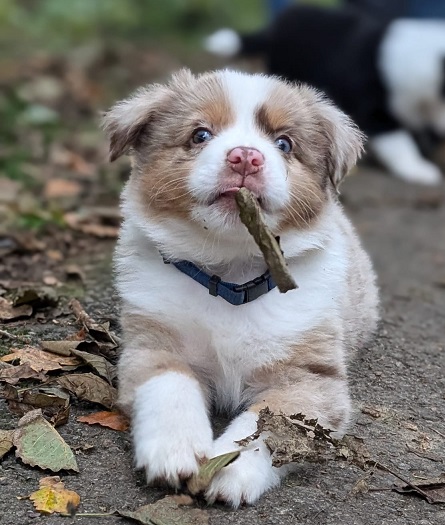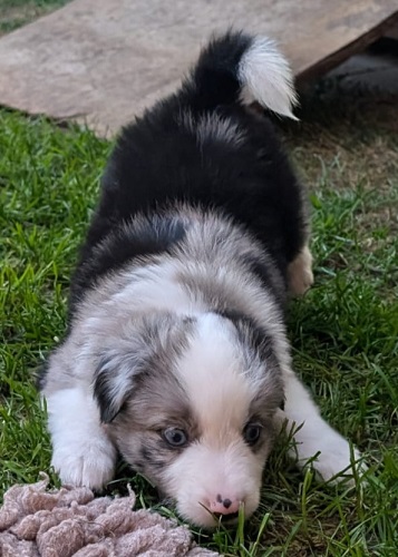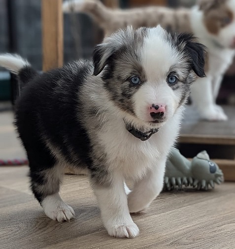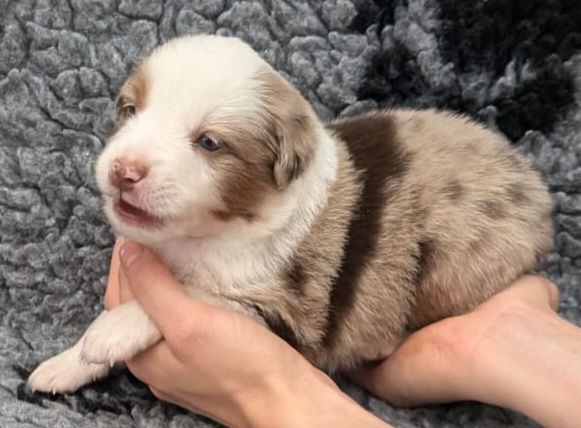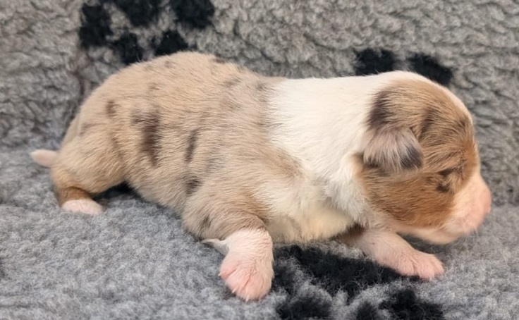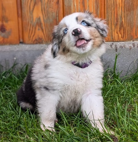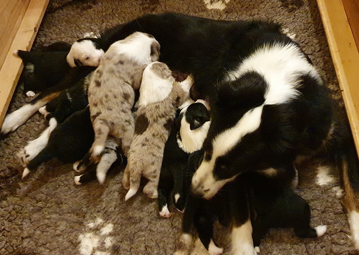 Mini Australian Shepherd Wurf: Picot und Phoebe Am 5.9. hat unsere Phoebe 9 kleinen Welpen das Leben geschenkt. Es sind 3 Hündinnen in black tri und 6 Rüden 2 in black tri, 2 in blue merle und 2 in red merle. Lange haben wir nach einem Deckrüden für unsere Maus gesucht. Da Phoebe mit ihren 46 cm eine relativ große Hündin ist, haben wir extra nach einem kleine Rüden gesucht. Bei Isabelle und den Lucky Hearts sind wir auf den kleinen Picot gestoßen. Picot ist erst im Frühjahr aus Portugal nach Deutschland gekommen und einfach nur toll. Bildschön, mit besten Untersuchungsergebnissen und mit nur 38,5 cm relativ klein. Einen lieben Dank an Isabelle, dass der süße Picot der Papa von Phoebes Welpen werden durfte. Phoebe und Picot haben alle nötigen Untersuchungen: Phoebe HD A2/ ED 0 CEA, PRA, HSF4, NCL, DM, CMR1, EIC, HUU, IGS, MH, von Willebrand, Hüftinstabilität 1 und 2 frei und MDR1 +/-. Mehr über Phoebe erfahrt ihr unter "unsere Hunde" "Hündinnen" und dann "Phoebe". Picot Picot ist HD, PL, ED, OCD und ÜGS frei außerdem ist er MDR, PRA, NL, HSF4, CEA, DM und NAD frei. Mehr über Picot erfahrt ihr auf der Homepage von den Lucky Hearts Mini Australian Shepherds unter : Tutti Frutti of American madness - Lucky Hearts Miniature Australian Shepherd (lucky-hearts.com)