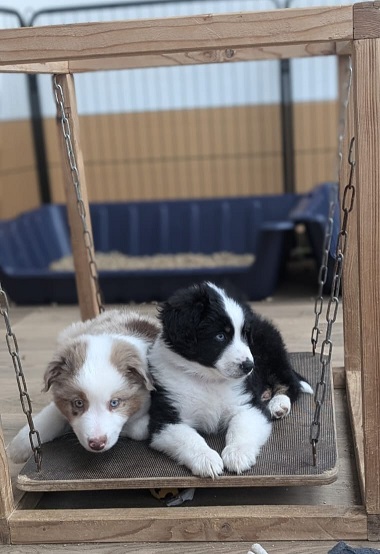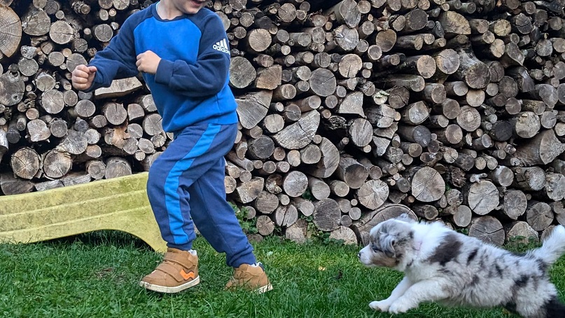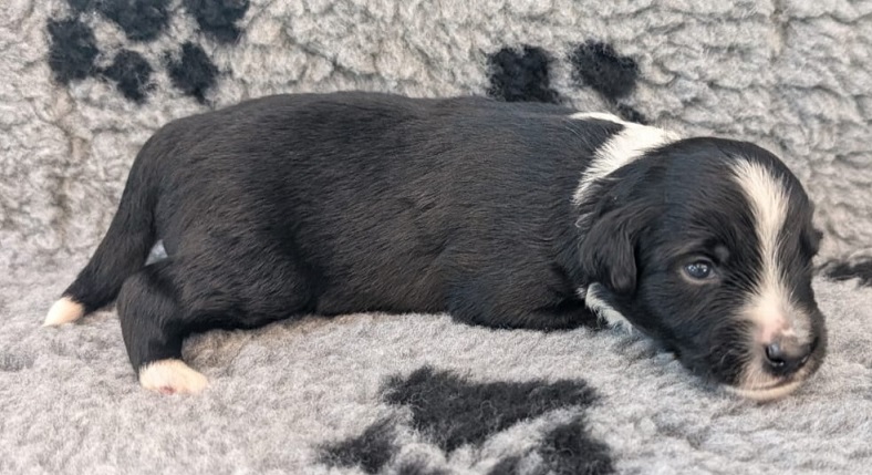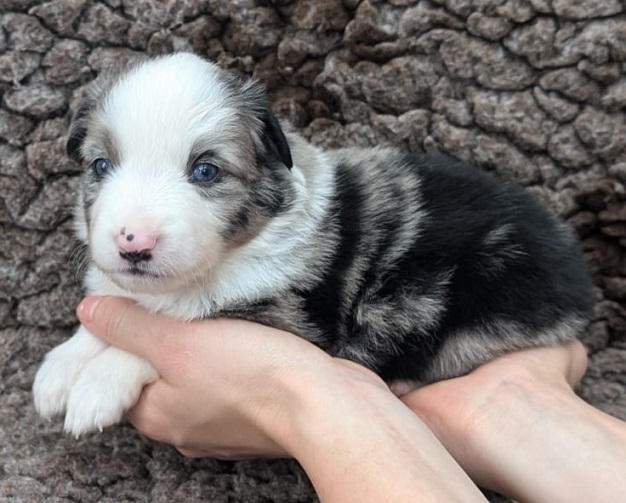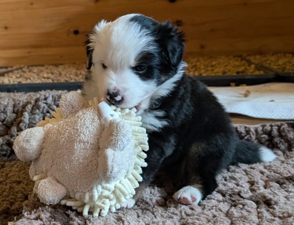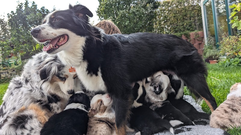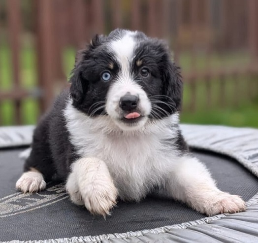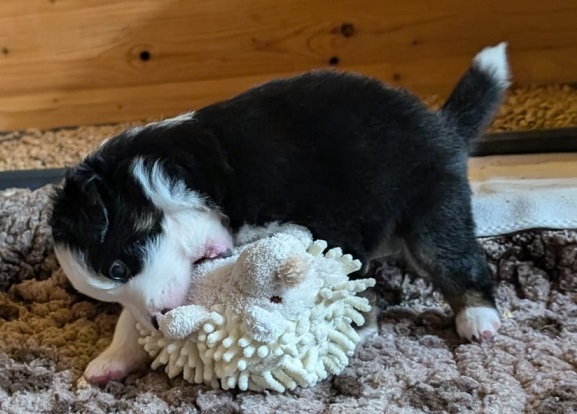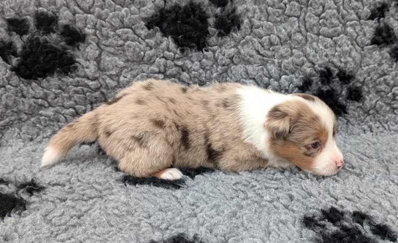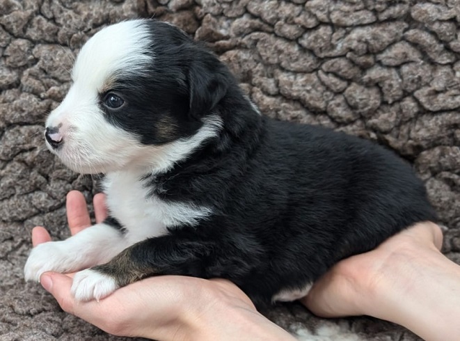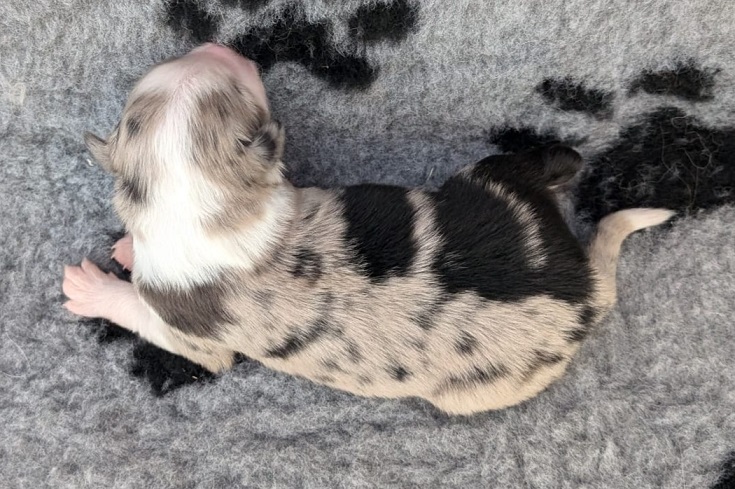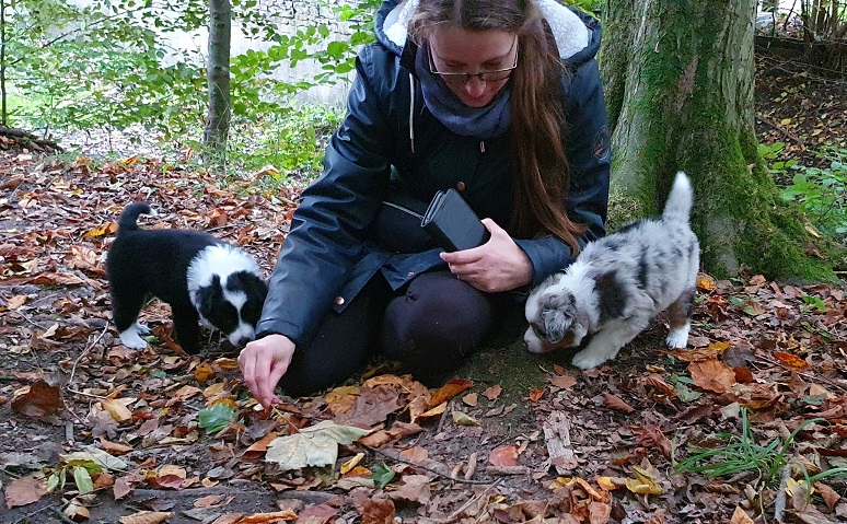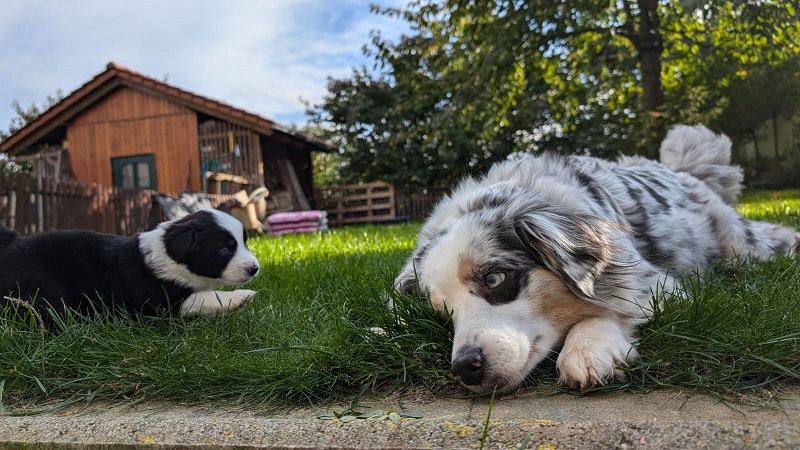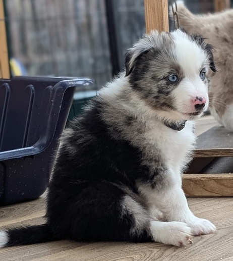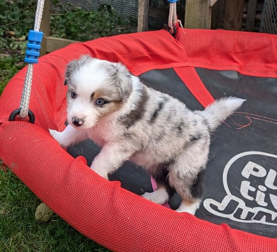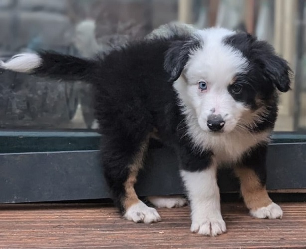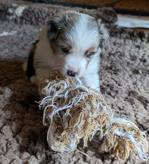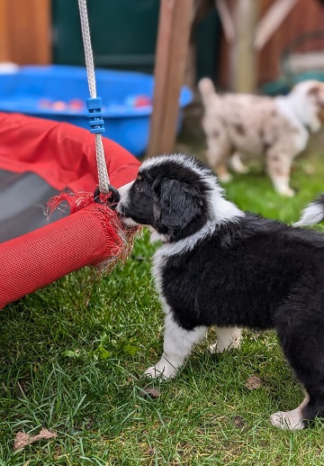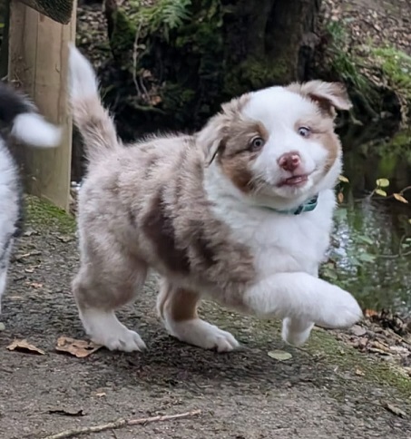 Mini Australian Shepherd Wurf: Picot und Phoebe Am 5.9. hat unsere Phoebe 9 kleinen Welpen das Leben geschenkt. Es sind 3 Hündinnen in black tri und 6 Rüden 2 in black tri, 2 in blue merle und 2 in red merle. Lange haben wir nach einem Deckrüden für unsere Maus gesucht. Da Phoebe mit ihren 46 cm eine relativ große Hündin ist, haben wir extra nach einem kleine Rüden gesucht. Bei Isabelle und den Lucky Hearts sind wir auf den kleinen Picot gestoßen. Picot ist erst im Frühjahr aus Portugal nach Deutschland gekommen und einfach nur toll. Bildschön, mit besten Untersuchungsergebnissen und mit nur 38,5 cm relativ klein. Einen lieben Dank an Isabelle, dass der süße Picot der Papa von Phoebes Welpen werden durfte. Phoebe und Picot haben alle nötigen Untersuchungen: Phoebe HD A2/ ED 0 CEA, PRA, HSF4, NCL, DM, CMR1, EIC, HUU, IGS, MH, von Willebrand, Hüftinstabilität 1 und 2 frei und MDR1 +/-. Mehr über Phoebe erfahrt ihr unter "unsere Hunde" "Hündinnen" und dann "Phoebe". Picot Picot ist HD, PL, ED, OCD und ÜGS frei außerdem ist er MDR, PRA, NL, HSF4, CEA, DM und NAD frei. Mehr über Picot erfahrt ihr auf der Homepage von den Lucky Hearts Mini Australian Shepherds unter : Tutti Frutti of American madness - Lucky Hearts Miniature Australian Shepherd (lucky-hearts.com)
