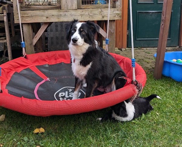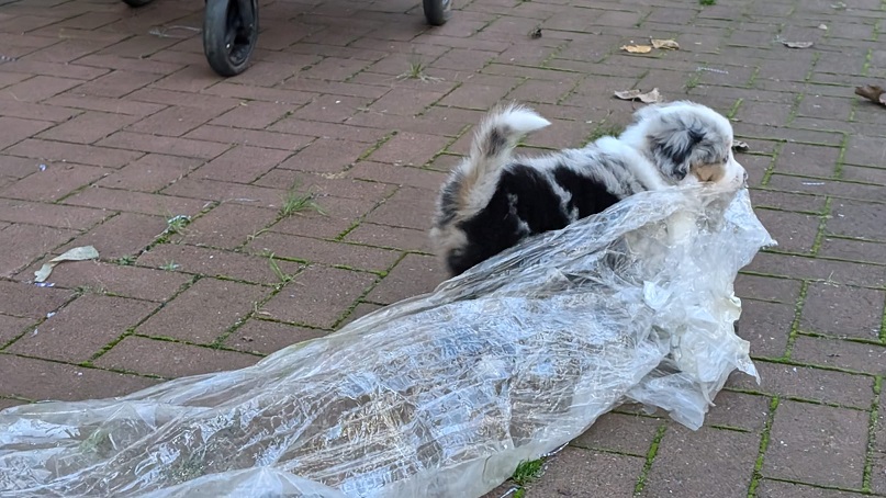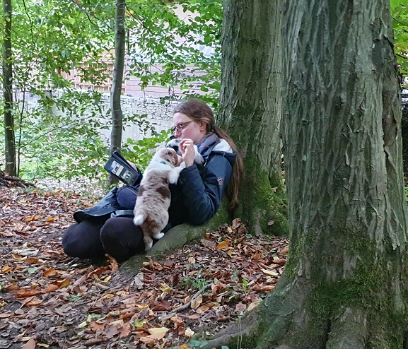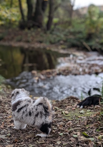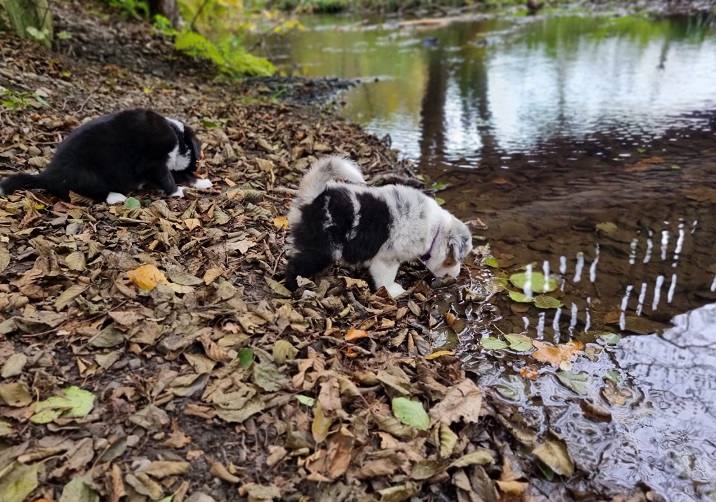 Klein Yuna ist in ihrem Übermut leider im Wasser gelandet, hat sie aber kaum gestört. Nachdem das neue Frauchen sie ein bisschen getrocknet hat, konnte sie direkt wieder Blödsinn machen.
