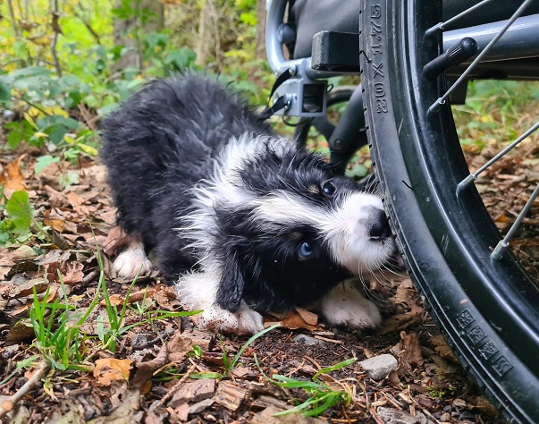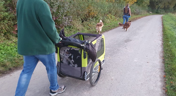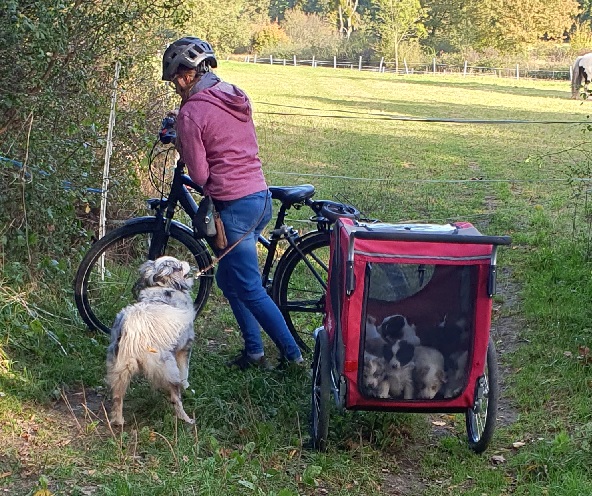 Beim nächsten Ausflug ging es mit dem Fahrrad und Anhänger zu unserem Hundeplatz.