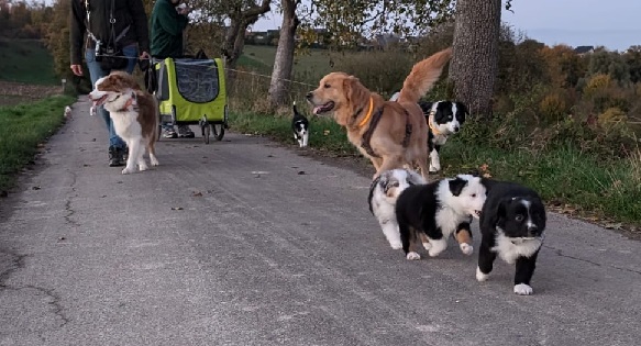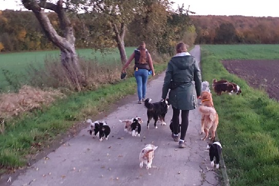 Spaziergang mit den großen Hunden in der Dämmerung.