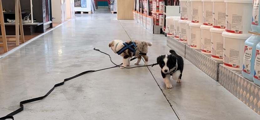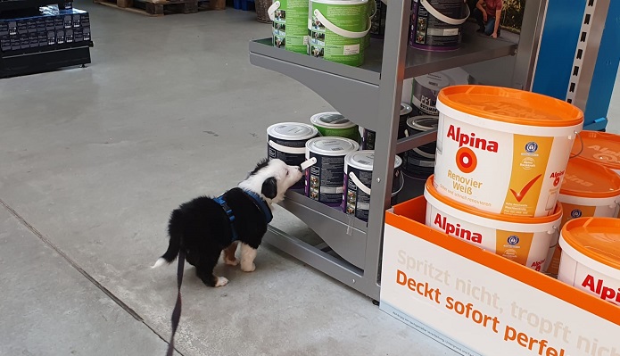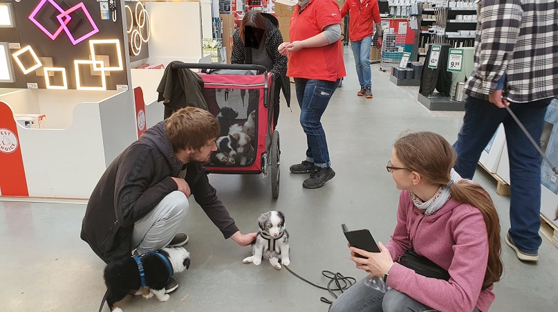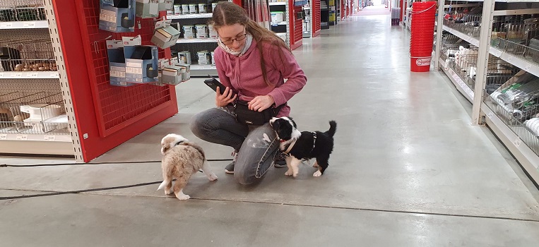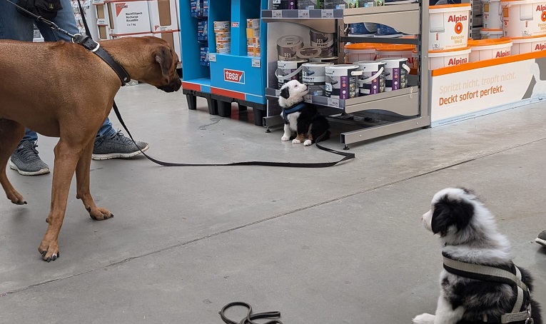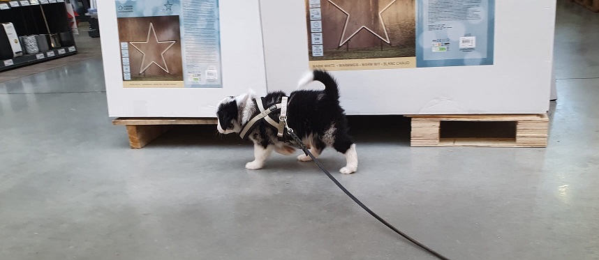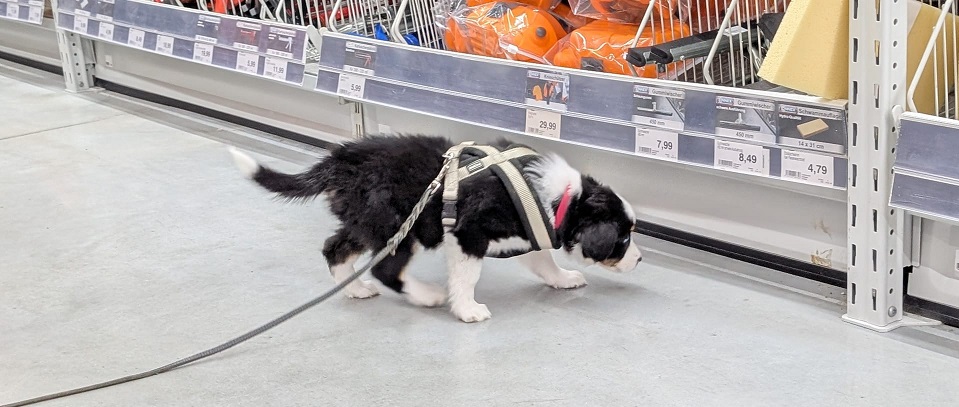 Im Laden haben wir sie dann einzeln an die Leine genommen. Haben sie alle ziemlich cool gemeistert.